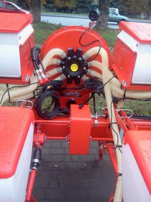 Ширина рамы –580 см, количество рядов – 8, высевающий аппарат типа SP (Standart Planting), расстояние между рядами –75 см,емкость семенного бачка –34 л,8 высевающих дисков, прикатывающие колеса, емкость туковых баков 4×160 л, анкерный сошник высева удобрений, централизированная система регулировки дозатора, удобрений MINIMAX, трехточечная навеска II категории, карданный вал, гидравлический маркер, вакуумметр, комплект габаритных огней, два комплекта высевающих дисков, монитор, транспортное устройство.