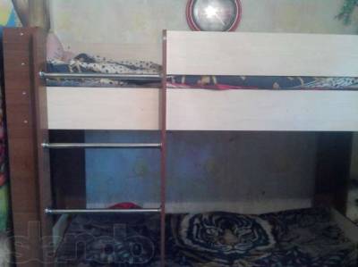 Двухярусная кровать б/у, в эксплуатации 4 месяца, в отличном состоянии с двумя ватными матрасами.