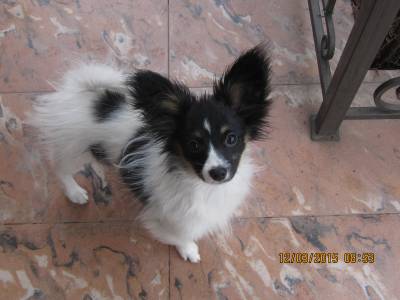 мальчик папильон, отличные родители, окрас триколор, черные уши и рыжие бровки и щечки, послушный, очень умненький, веселый, отличный компаньон!